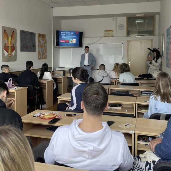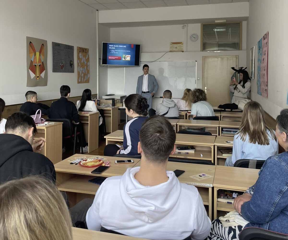 In 2025, EID implemented the youth-led activity “Be the Voice of Those Without a Voice” as part of the peer education program “PROBA – Peer Nonviolence Ambassador Training Program” One EID youth member, who completed certified training on nonviolence, communication, delivered a peer-to-peer educational session for high school students at “Gemit Apeiron” School Centre in Banja Luka.